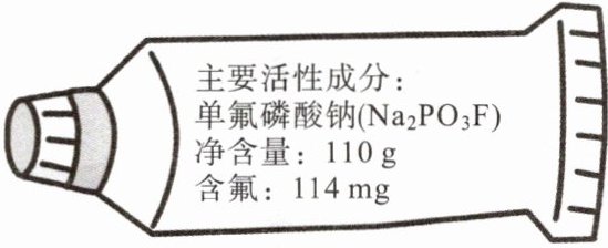 (2)牙膏净含量$110g = 110000mg$,含氟$114mg$,则该牙膏中$F$元素的质量分数为$\frac{114mg}{110000mg}\times100\%\approx0.1\%$。