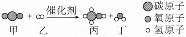 (1)根据微观示意图可知,甲是$CO_{2}$,乙是$H_{2}$,丙是$CH_{3}OH$,丁是$H_{2}O$,反应的化学方程式为$CO_{2}+3H_{2}\xlongequal{催化剂}CH_{3}OH+H_{2}O$;反应前$C$元素在$CO_{2}$中显$ + 4$价,反应后在$CH_{3}OH$中显$-2$价,$H$元素反应前在$H_{2}$中显$0$价,反应后在$CH_{3}OH$和$H_{2}O$中显$ + 1$价,$O$元素化合价始终为$-2$价,所以反应前后化合价发生变化的元素有$C$、$H$。