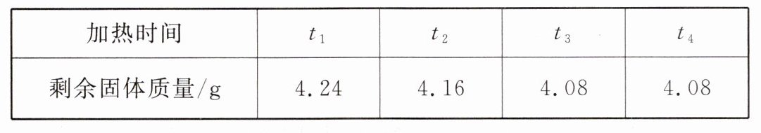 由表格数据可知,加热$t_3$和$t_4$时间后,剩余固体质量都是$4.08g$,说明在$t_3$时氯酸钾已经完全分解。