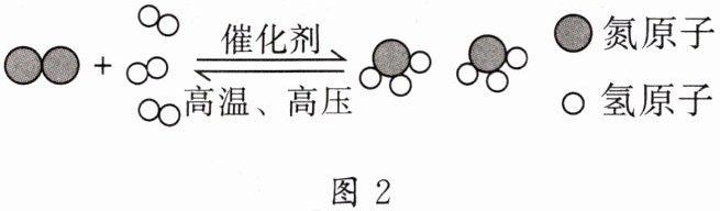 (4)氨气是一种重要的化工原料,如图2是氮气和氢气反应生成氨气的微观示意图。