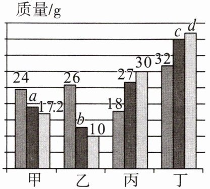 9. 在密闭容器中有甲、乙、丙、丁四种物质,在一定条件下反应,测得反应前及反应过程中两个时刻各物质的质量如下图所示,图中a、b、c、d分别表示相应物质的质量。下列说法中正确的是 (
