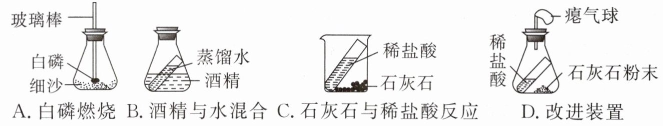 。(2)小明受到A装置的启发,将C装置进行改进,如图D所示,此实验的现象是