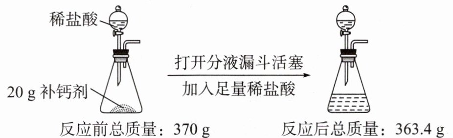 23. 某补钙剂的主要成分是碳酸钙。为测定该补钙剂中碳酸钙的质量分数,某同学进行了如图所示的实验操作(假设其他成分可溶于水但不参与反应)。