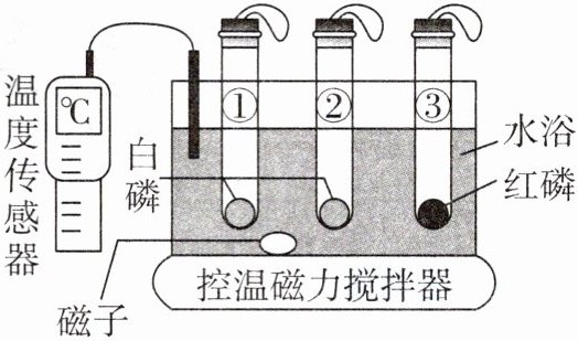 12. 利用如图装置进行燃烧条件的探究实验。试管①中充满氮气,试管②③中充满氧气,升温至$40^{\circ }C$,仅观察到②中的白磷燃烧。下列叙述错误的是 (