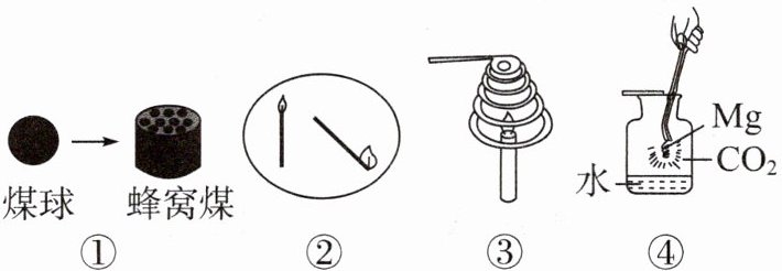 )A. ①中将煤球变成蜂窝煤后再燃烧,其目的是延长煤燃烧的时间
