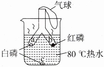 (填“a”“b”或“c”)处,该处燃着的磷会很快熄灭,原因可能是B