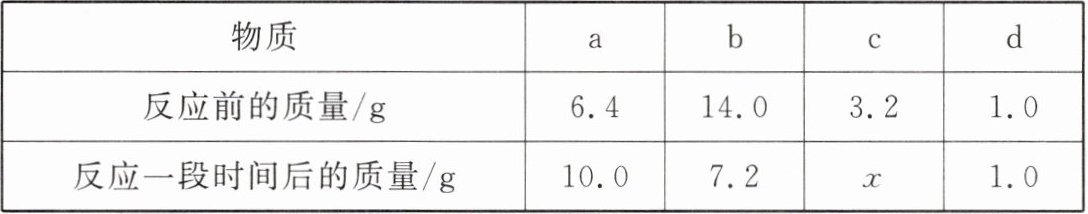 10. 将一定质量的a、b、c、d四种物质放入一个密闭容器中,在一定条件下反应一段时间后,测得各物质的质量如下表: