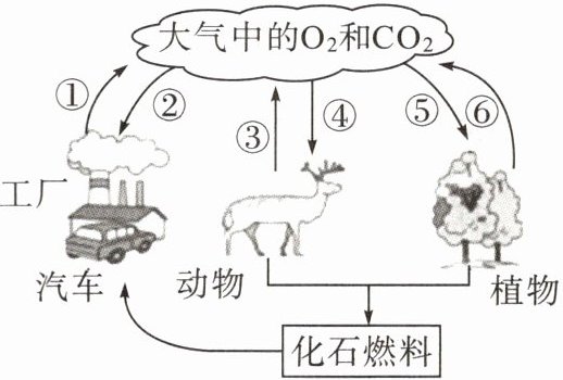 7. 氧循环和碳循环是自然界中的重要循环(如图)。分析两种循环,其中不正确的是(