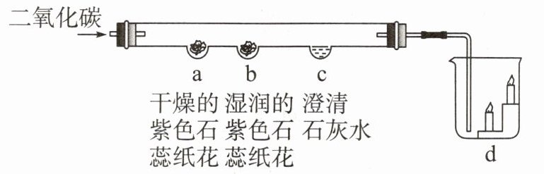 。(3)d处观察到燃烧的蜡烛自下而上依次熄灭,说明二氧化碳具有的性质是