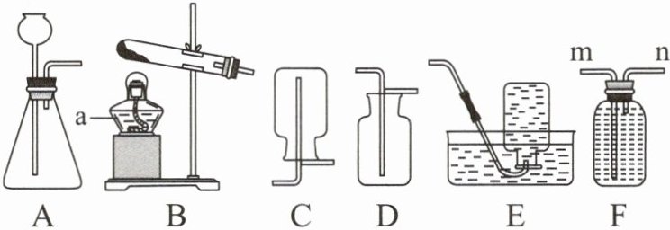 (4)氢气密度比水小,用装置$F$排水法收集氢气时,氢气应从短管进,水从长管出,所以装置$A$的导管应该和装置$F$的$n$端相连。