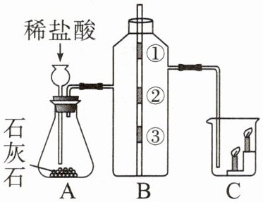 D. 装置C中点燃的蜡烛自上而下熄灭,说明二氧化碳不支持燃烧