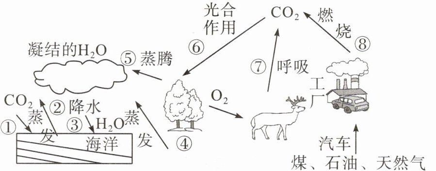 7. 如图是自然界存在的三大重要循环——“水循环”“氧循环”和“碳循环”。用学科观点分析“氧循环”和“碳循环”,其中不正确的是 (