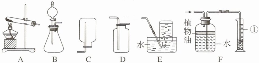 (2) 测定生成二氧化碳的体积可以选用$F$装置,瓶中植物油的作用是防止二氧化碳溶于水且与水反应;