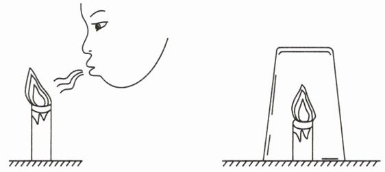 9. 小文在学习“灭火的原理和方法”的内容后,做了以下实验,用两种不同方法熄灭蜡烛火焰。