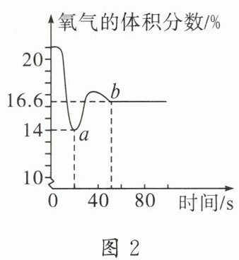 - (2)图1中甲瓶是空气(氧气约占$21\%$),乙瓶中氧气与二氧化碳体积比为$1:4$(氧气约占$20\%$),设计对比实验的目的是探究二氧化碳是否是影响蜡烛燃烧的因素(或探究二氧化碳浓度对蜡烛燃烧的影响等合理表述);蜡烛燃烧生成二氧化碳和水,二氧化碳不能燃烧也不支持燃烧,随着燃烧进行,二氧化碳浓度增大,可能导致蜡烛熄灭(或温度降低到蜡烛着火点以下,因为燃烧消耗氧气,反应放热,随着氧气减少,热量散失等合理表述)。