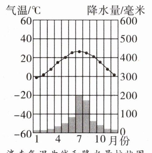 读“济南气温曲线和降水量柱状图”,完成 2~4 题。