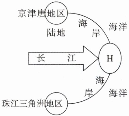 7. 如果把长江比作“箭”,把东部沿海地区比作“弓”,则位于“箭头”位置的H地区是 (