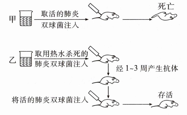 免疫。(3) 将另外一种病菌注入经过乙处理的鼠体内,鼠