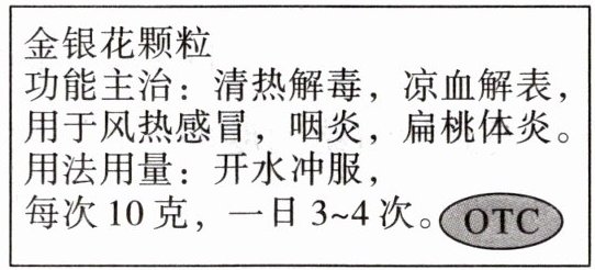 1. 中医药是我国的传统文化瑰宝,金银花颗粒是家庭常备中药之一。如图为药盒上的说明,据此可判断 (