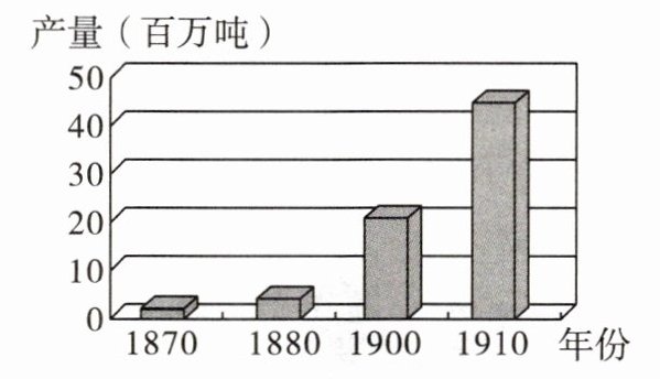 10. 下图是 1870—1910 年世界石油年产量的变化示意图。这一时期世界石油年产量迅速增加的主要原因是 (