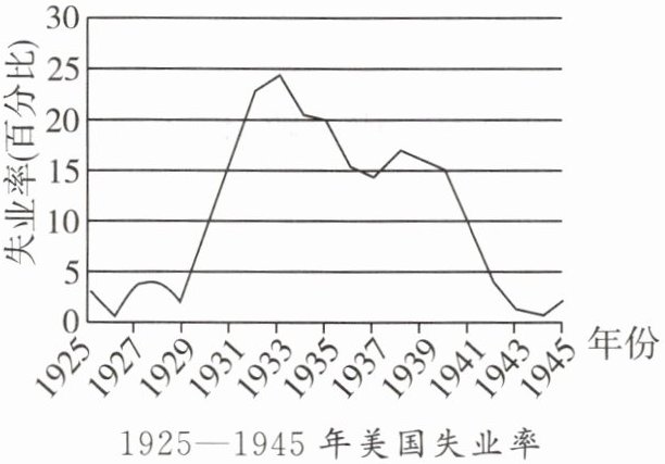 1. 下图是“1925—1945 年美国失业率”,其中 1933 年美国失业率最高。引发这一结果的事件是(