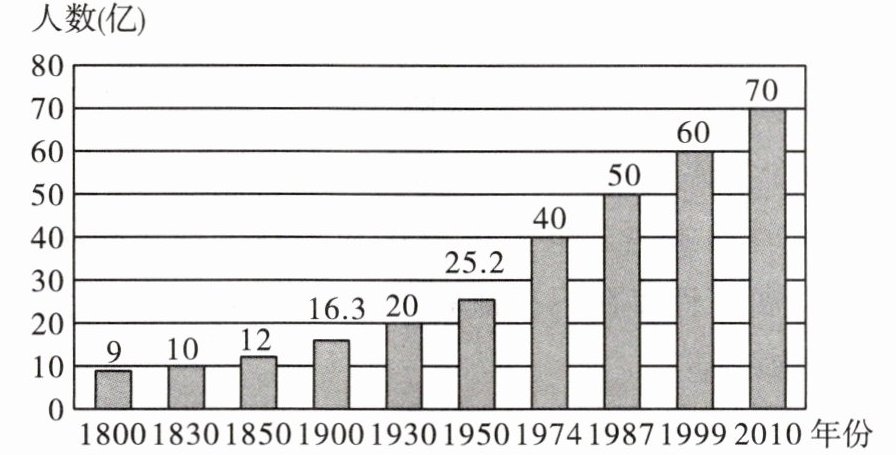 10. 下表是 1800—2010 年世界人口增长情况曲线图,从图中可以看出世界人口增长速度越来越快。世界人口增长过快(