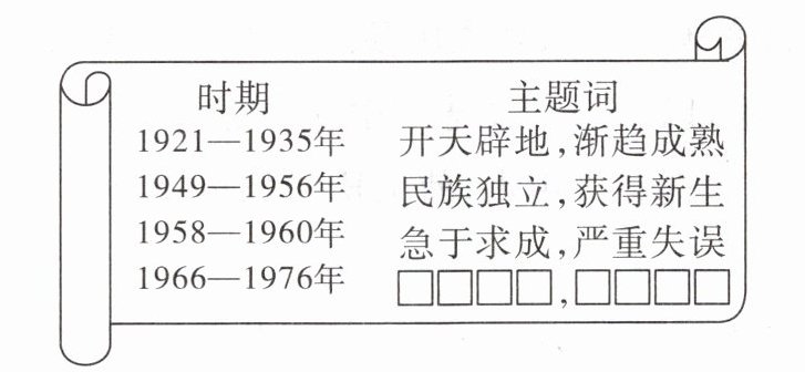 8. 如图是小明同学制作的中国近现代史不同时期的时代特征卡片,其中“□□□□”内应填入的内容是(