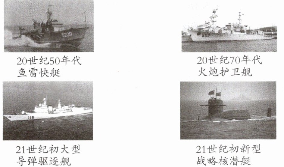 1. 2025 年是中国人民海军成立 76 周年。以下是人民海军不同时期的主战装备,这反映出人民军队(