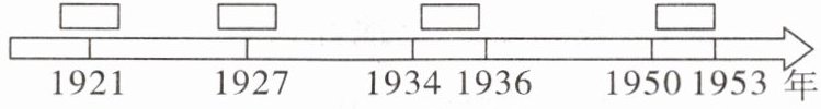 5. 中共中央总书记、国家主席、中央军委主席习近平在 2021 年 2 月 20 日党史学习教育动员大会上指出,要“大力发扬红色传统、传承红色基因,赓续共产党人精神血脉,始终保持革命者的大无畏奋斗精神,鼓起迈进新征程、奋进新时代的精气神”。按时间先后顺序将中国共产党的“红色精神”填入时间轴,依次是 (