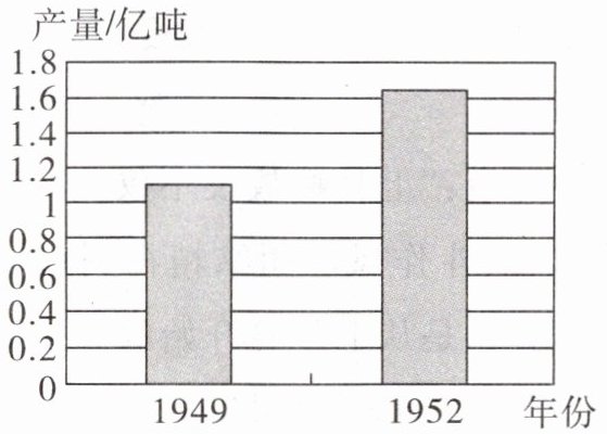7. 下图是 1949 年和 1952 年中国粮食产量示意图,促使图中数据发生变化的主要原因是 (