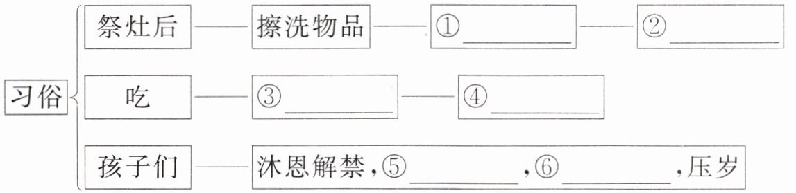 2. 作者在文中回忆了过年的哪些习俗? 完成下面的思维导图。