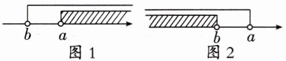 )(2)当不等号的方向相反时(称异向不等式),即$\left\{\begin{array}{l} x<a,\\ x>b\end{array}\right. $或$\left\{\begin{array}{l} x>a,\\ x<b.\end{array}\right. (a>b)$