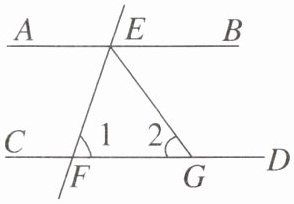 14. 如图, $ A B // C D $,直线 EF 分别交 AB,CD 于点 E,F,EG 平分 $ \angle B E F $.若 $ \angle 1 = 68 ^ { \circ } $,则 $ \angle 2 $ 的度数是