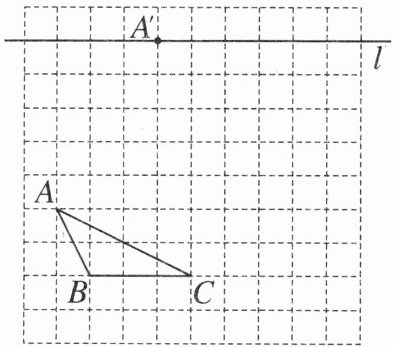 19. 在如图所示的正方形网格中,每个小正方形的边长都为 1 个单位长度,三角形 ABC 的顶点都在正方形网格的格点上,将三角形 ABC 先向上平移 m 个单位长度,再向右平移 n 个单位长度,得到三角形 $ A ^ { \prime } B ^ { \prime } C ^ { \prime } $,图中直线 l 上的点 $ A ^ { \prime } $ 是点 A 的对应点.