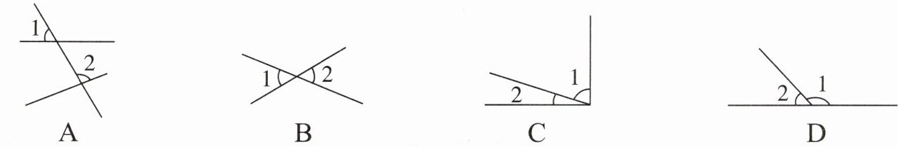 1. 下列各图中,$∠1$与$∠2$互为邻补角的是 (