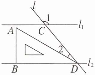 15. 如图,直线$l_{1}// l_{2}$,直线$l$分别与$l_{1},l_{2}$相交于点$C,D$,把一块含$30^{\circ }$角的三角尺按如图所示的位置摆放.若$∠1=130^{\circ }$,则$∠2=$