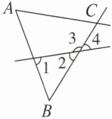 16. 如图,有下列判断:①$∠A$与$∠1$是同位角;②$∠A$与$∠B$是同旁内角;③$∠4$与$∠1$是内错角;④$∠1$与$∠3$是同位角.其中正确的是____