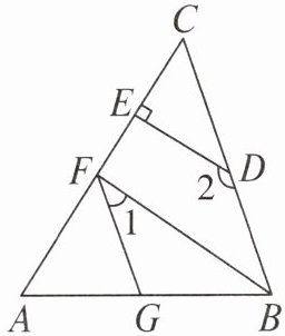 23. (6分)如图,已知$DE⊥AC,∠AGF=∠ABC,∠1+∠2=180^{\circ }$,试判断$BF$与$AC$的位置关系,并说明理由.