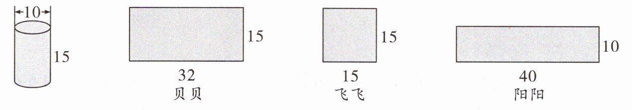 ,理由:圆柱形茶叶罐侧面展开后是长方形,长方形的长等于圆柱底面周长,即$3.14×10=31.4(cm)$,宽等于圆柱的高15cm,贝贝的设计符合这一尺寸。