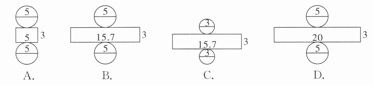 )dm的圆形铁皮刚好能做成一个无盖的圆柱形容器。A. 6