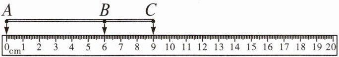 6. 沿着直尺的方向拉橡皮筋(如图)。点A的位置固定不变,将橡皮筋拉长,使点C的位置到12cm处,此时点B的位置在(