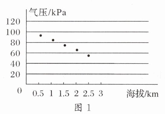 5. 某中学的兴趣小组根据在某座山测得的海拔、气压和沸点的六组数据绘制了图1、图2,则下列说法中错误的是 (