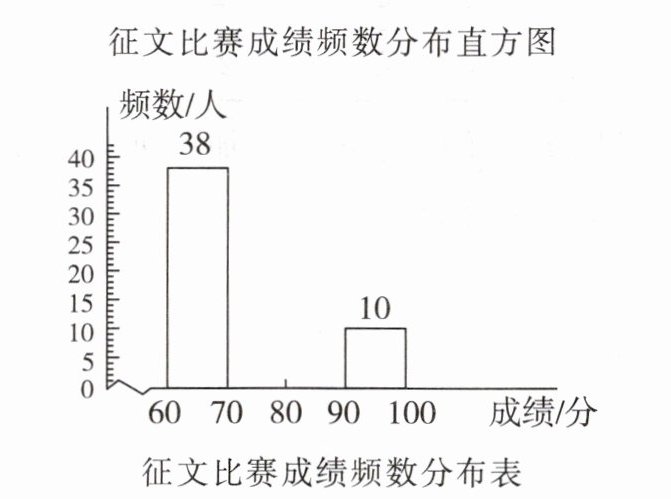 12. 某县举行“我爱我的祖国”征文比赛,已知每篇参赛征文成绩记m分($60\leqslant m\leqslant 100$),组委会随机抽取了部分参赛征文,统计了他们的成绩,并绘制了如下不完整的两幅统计图表.