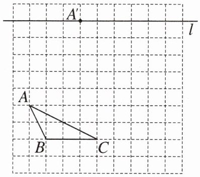19. 在如图所示的正方形网格中,每个小正方形的边长都为 1 个单位长度,三角形 ABC 的顶点都在正方形网格的格点上,将三角形 ABC 先向上平移 m 个单位长度,再向右平移 n 个单位长度,得到三角形 $ A ^ { \prime } B ^ { \prime } C ^ { \prime } $,图中直线 l 上的点 $ A ^ { \prime } $ 是点 A 的对应点.