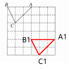 18. 如图,在边长为 1 个单位长度的小正方形组成的网格中,三角形 ABC 的顶点 A,B,C 都在小正方形的顶点上,将三角形 ABC 先向下平移 4 个单位长度,再向右平移 3 个单位长度得到三角形 $ A _ { 1 } B _ { 1 } C _ { 1 } $.