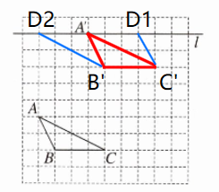 (3)在直线 l 上存在一点 D,使点 $ A ^ { \prime } $, $ B ^ { \prime } $, $ C ^ { \prime } $,D 所围成的四边形的面积为 6,请在直线 l 上画出所有符合要求的格点 D.