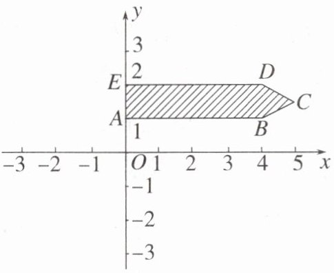 15. 如图,铅笔图案的五个顶点的坐标分别是$A(0,1),B(4,1),C(5,1.5),D(4,2),E(0,2)$,将图案向下平移$3$个单位长度,再向左平移$2$个单位长度,作出相应图案,并写出平移后相应五个点$A_{1},B_{1},C_{1},D_{1},E_{1}$的坐标.