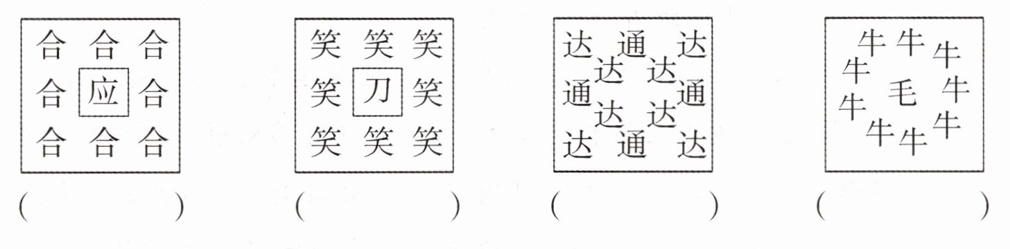 图中“合”字围绕着“应”字,可联想到成语**里应外合**,意思是指的是外面攻打,里面接应。