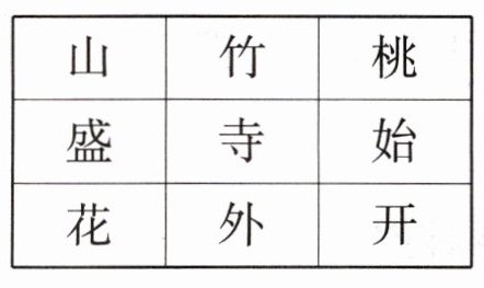 从九宫格中按顺序可得出诗句“山寺桃花始盛开”。