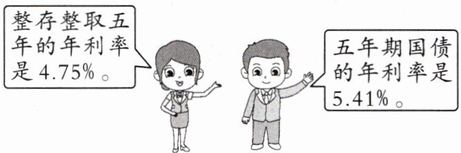 请你帮小强算一算:购买五年期国债比整存整取五年要多得多少利息?